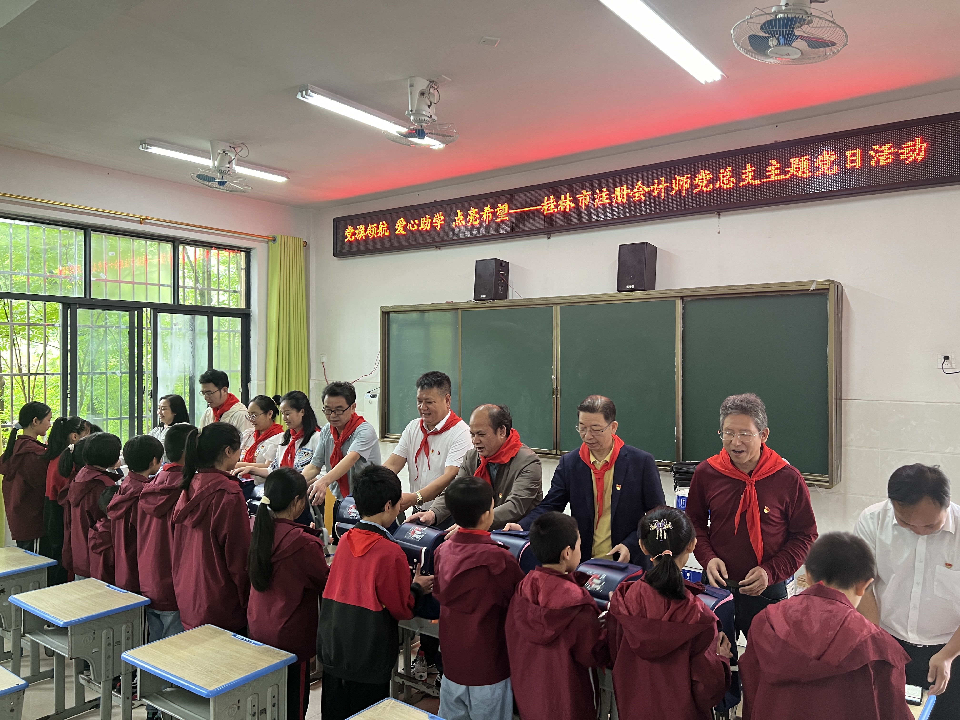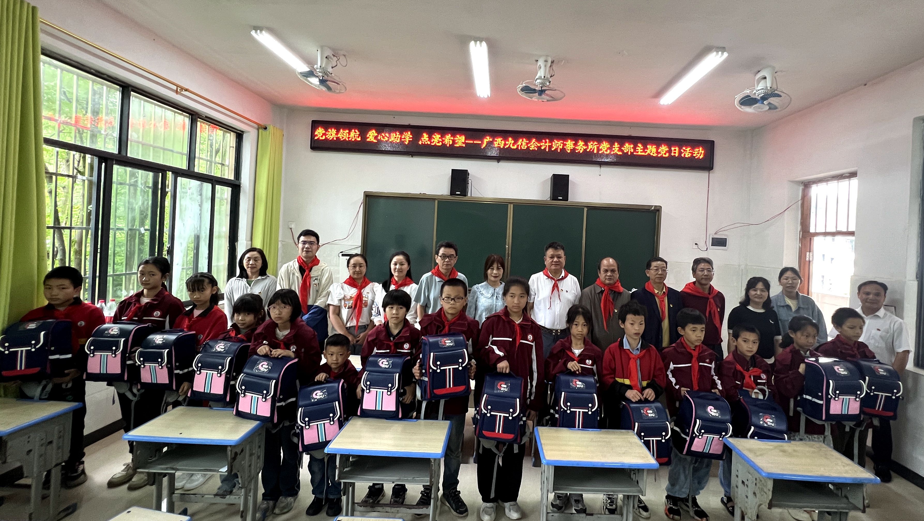 为践行中国共产党全心全意为人民服务的根本宗旨,强化基层党员对社会责任的担当意识,5月12日上午,桂林市注会行业党总支委员会携手广西九信会计师事务所党支部一行14人前往全州县白宝乡中心小学开展“党旗领航 爱心助学 点亮希望”主题党日活动,为乡镇教育事业高质量发展提供新助力。